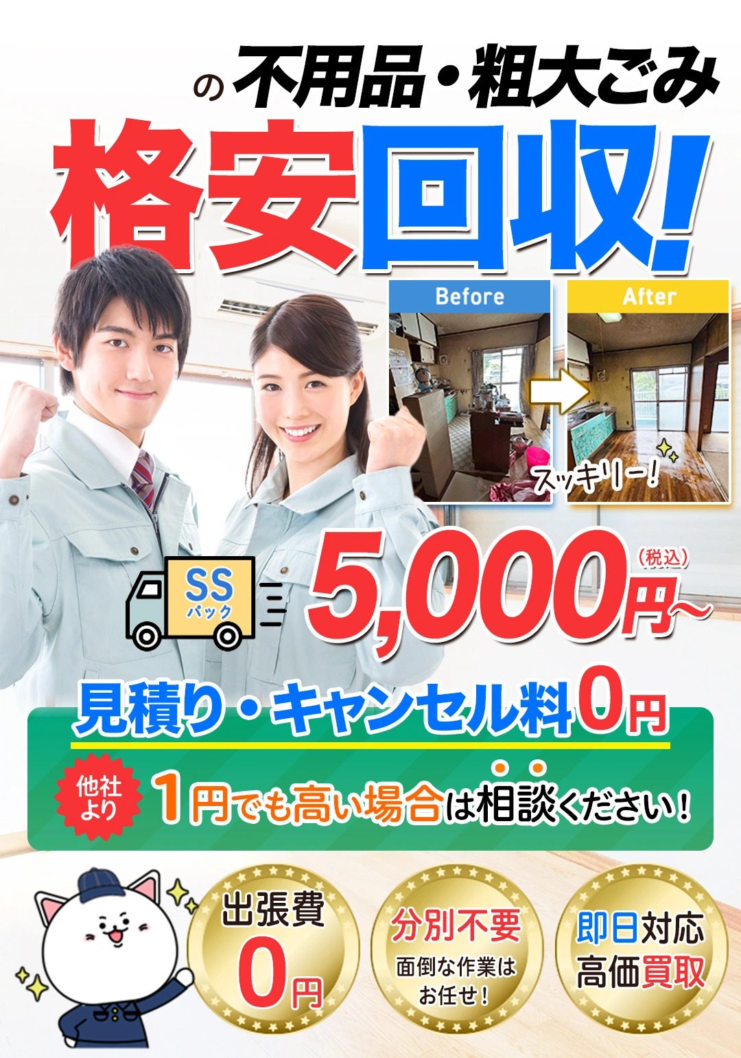 ご相談から出張お見積りまで完全無料ですので不用品処分にお困りの際はお気軽にご相談くださいませ!
